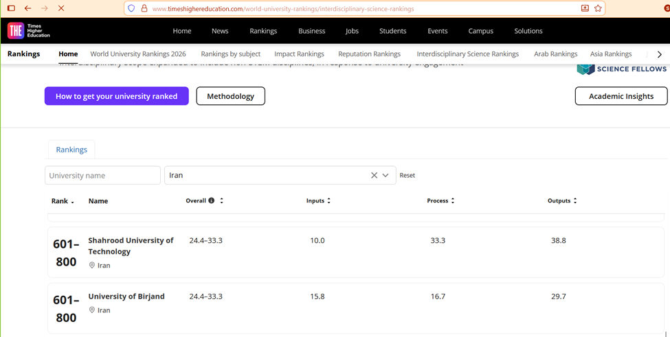 نخستین حضور دانشگاه بیرجند در رتبه‌بندی بین‌رشته‌ای علوم، نظام رتبه‌بندی Times
