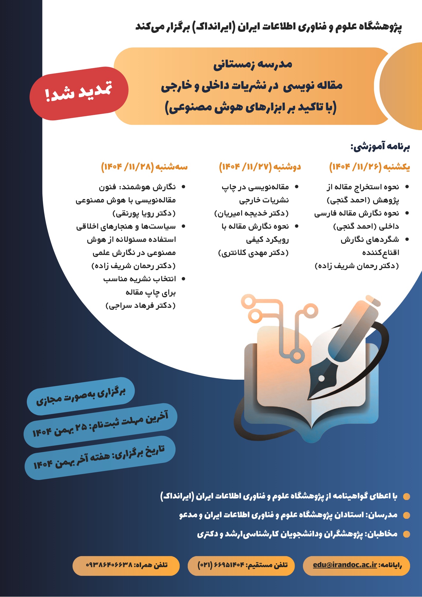 برگزاری مدرسه زمستانی مقاله نویسی در نشریات داخلی و خارجی(با تأکید بر ابزارهای هوش مصنوعی)